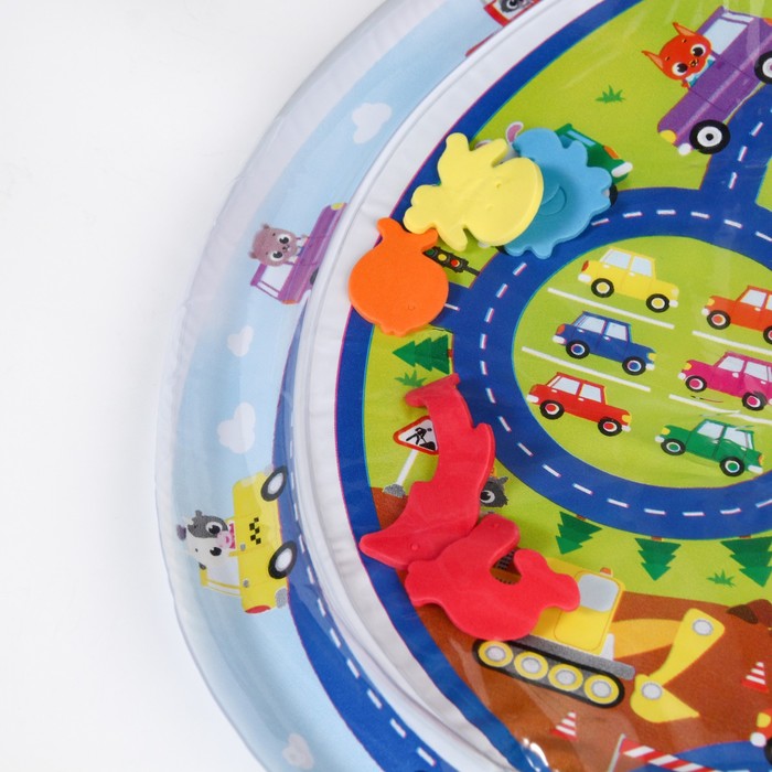 Акваковрик Крошка Я «Транспорт» надувной, развивающий, водный коврик, круглый, 65×65 см