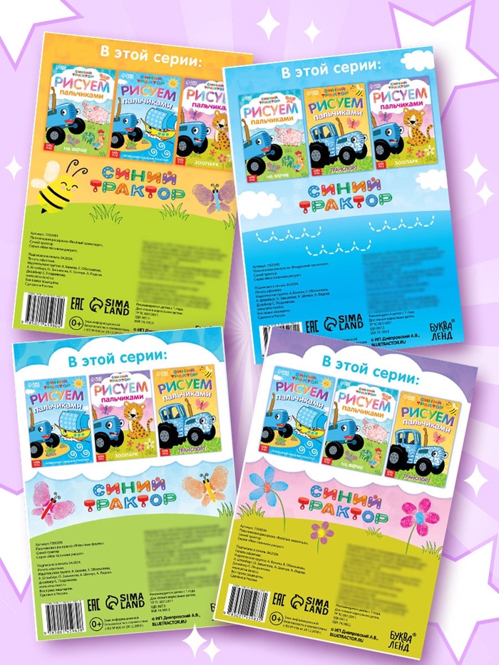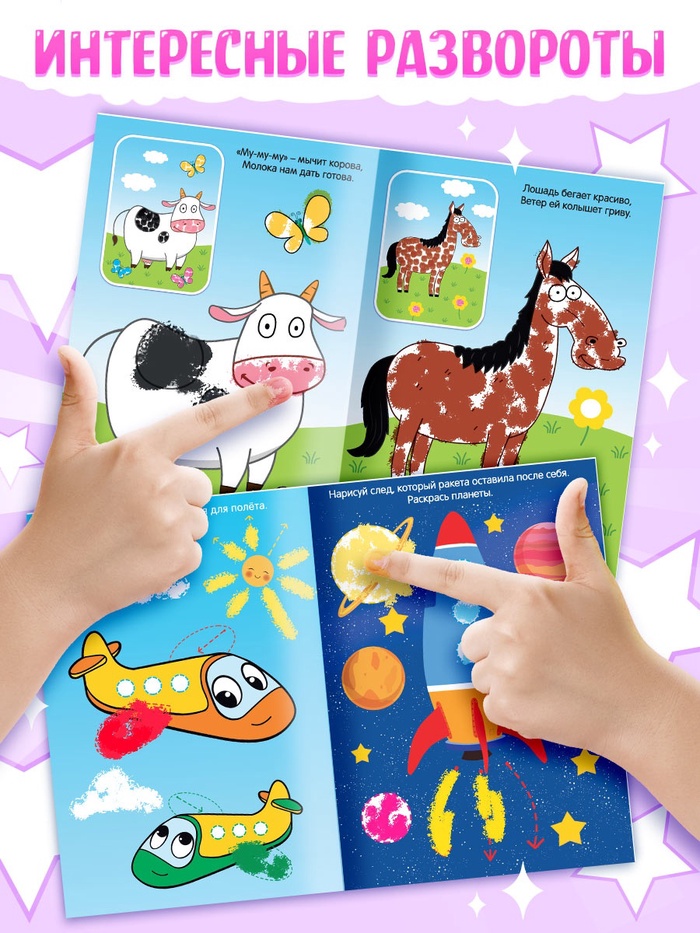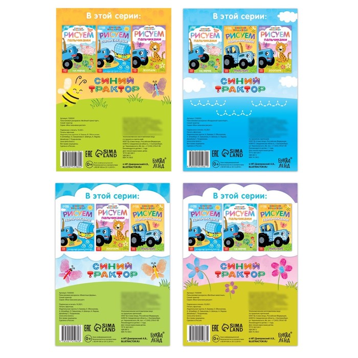 Набор пальчиковых раскрасок представлен четырьмя книгами различной тематики: