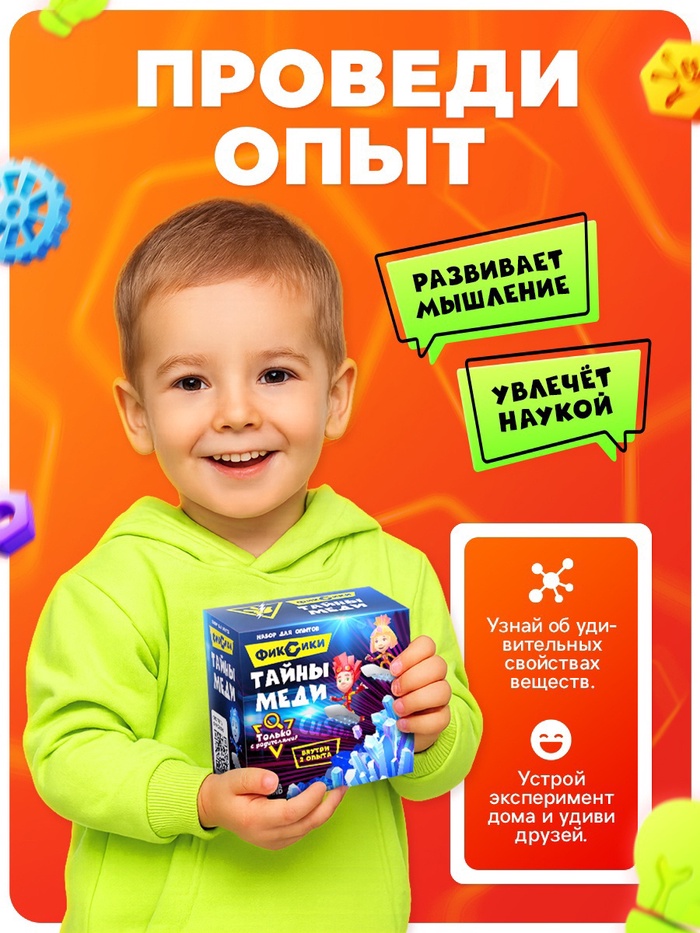 Откройте удивительные свойства меди вместе с Фиксиками! Набор для опытов «Тайны меди» — простой и безопасный эксперимент по выращиванию кристаллов. Ребёнок увидит, как обычные вещества создают необычные эффекты.