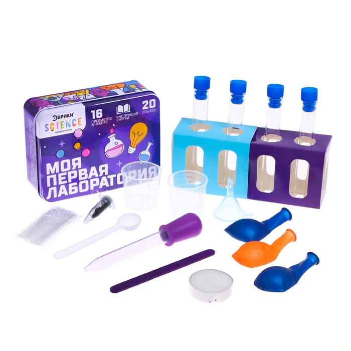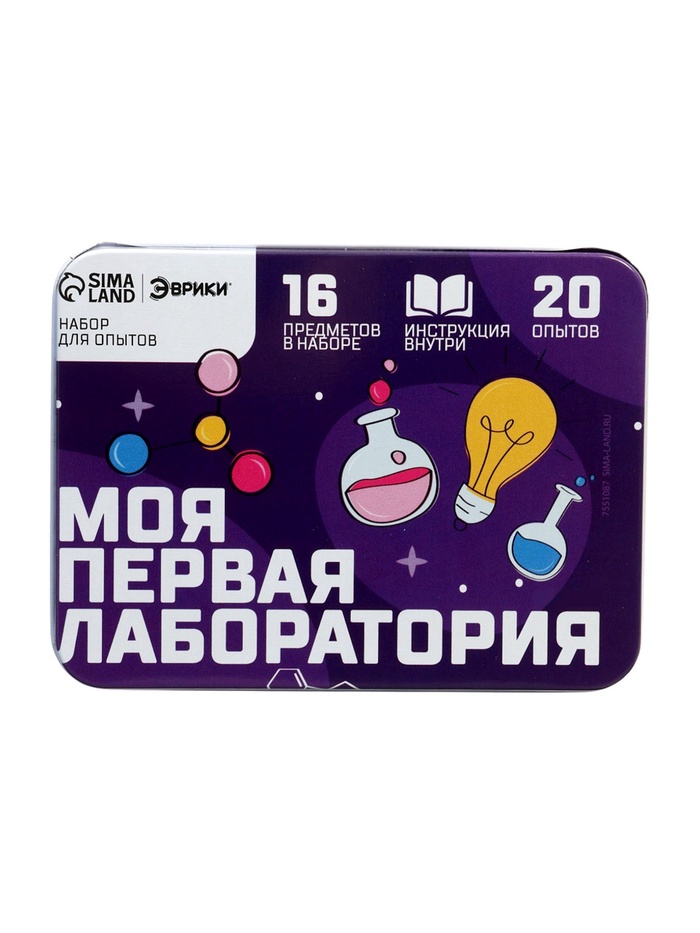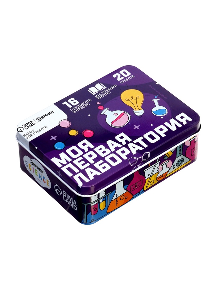 Яркая и удобная металлическая упаковка позволит переносить мини-лабораторию и проводить опыты в любых условиях!