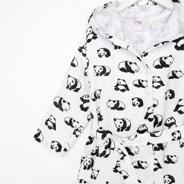 Халат детский муслиновый LoveLife «Панды» (2 года, рост 92-98 см) 100% хлопок, 235 г/м²