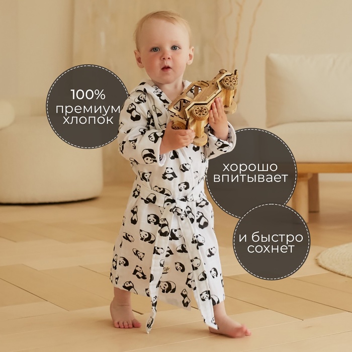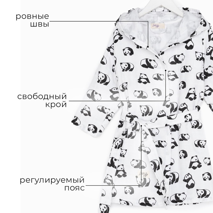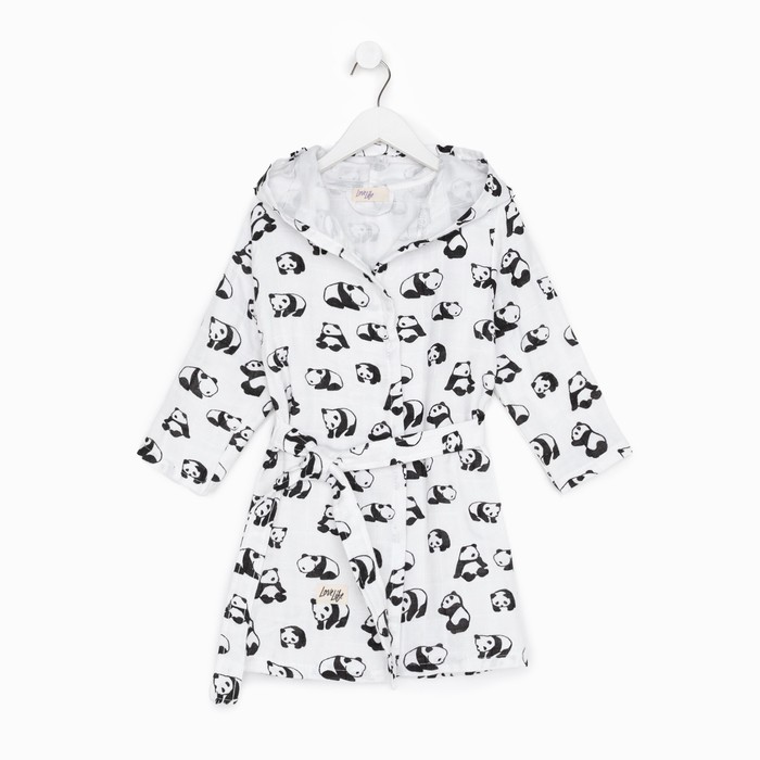 Халат детский муслиновый LoveLife «Панды» (3 года, рост 98-104 см) 100% хлопок, 235 г/м²