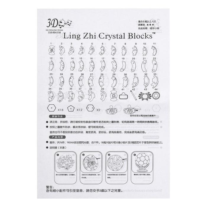 3D пазл кристаллический «Мяч», 77 деталей, световые эффекты, работает от батареек - это увлекательная игрушка, которая может стать отличным подарком, сделанным своими руками, частью интерьера или коллекции головоломок. Пазл будет оригинально смотреться в любой обстановке.
