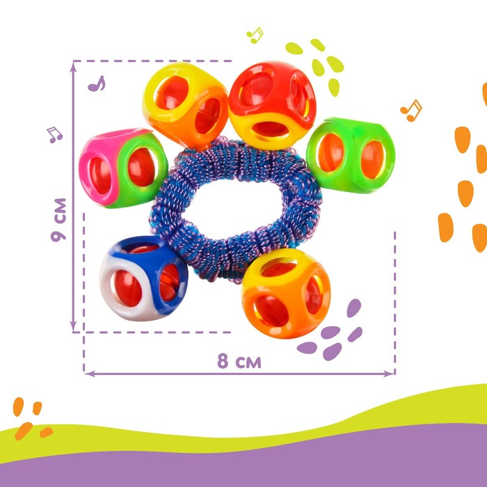 Звук в модели появляется при встряхивании. Причудливая форма надолго займёт внимание карапуза. Погремушку удобно использовать: лёгкая вещица подходит для захвата маленькими ладошками.