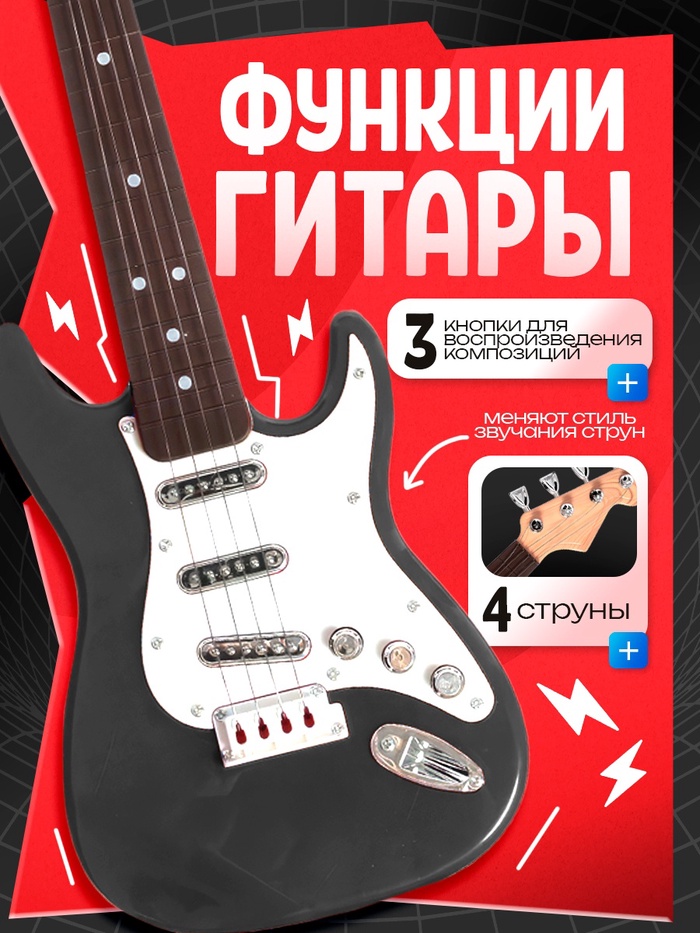 Игрушка музыкальная ZABIAKA «Гитара рокер», звуковые эффекты, чёрная