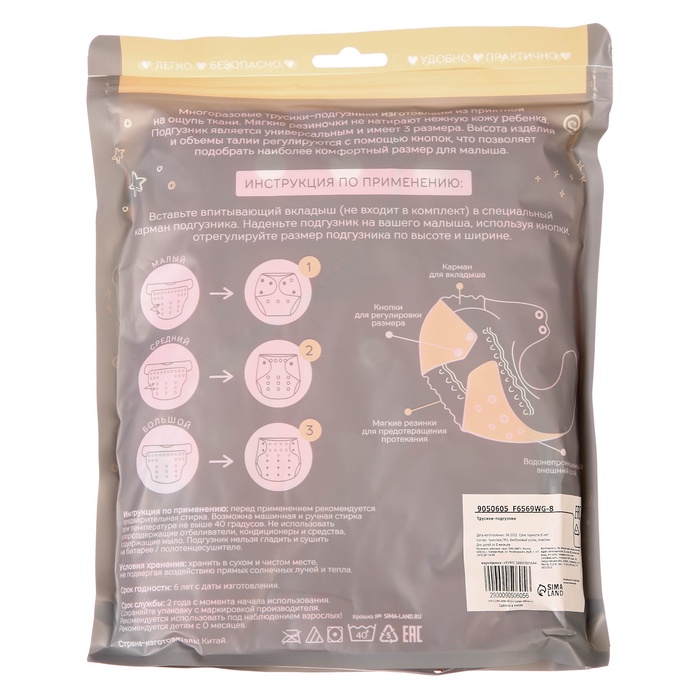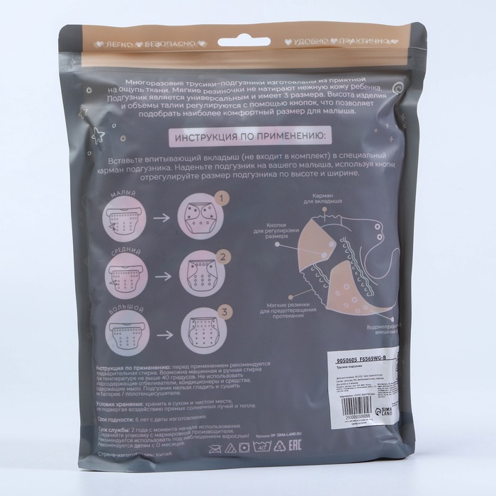 • Размер подгузника универсальный, подходит для детей от 3 до 15 кг, от рождения до 3 лет;