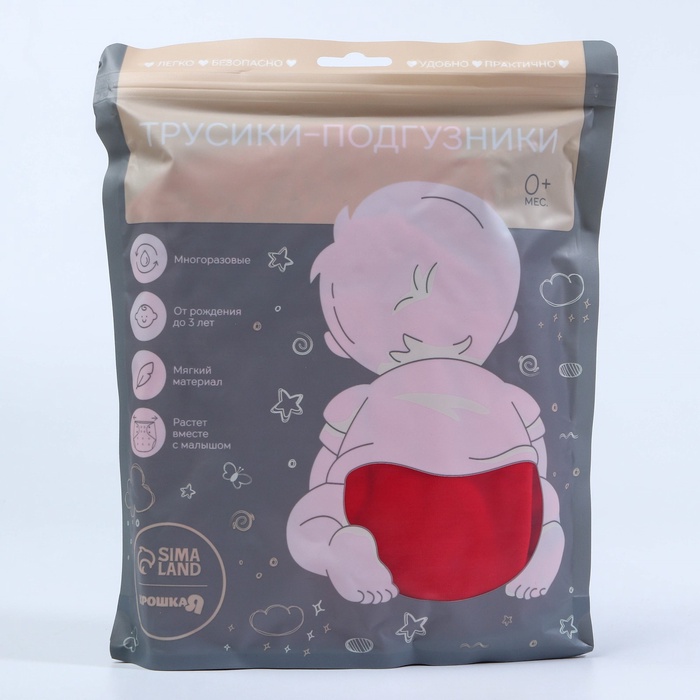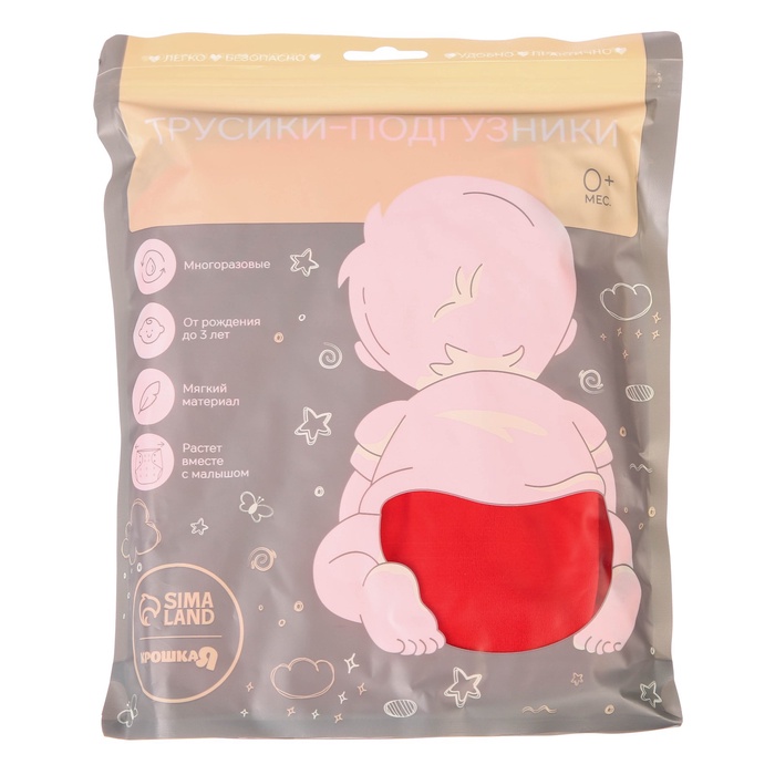 Многоразовый подгузник, угольно-бамбуковая ткань, 3-15 кг, красный, Крошка Я
