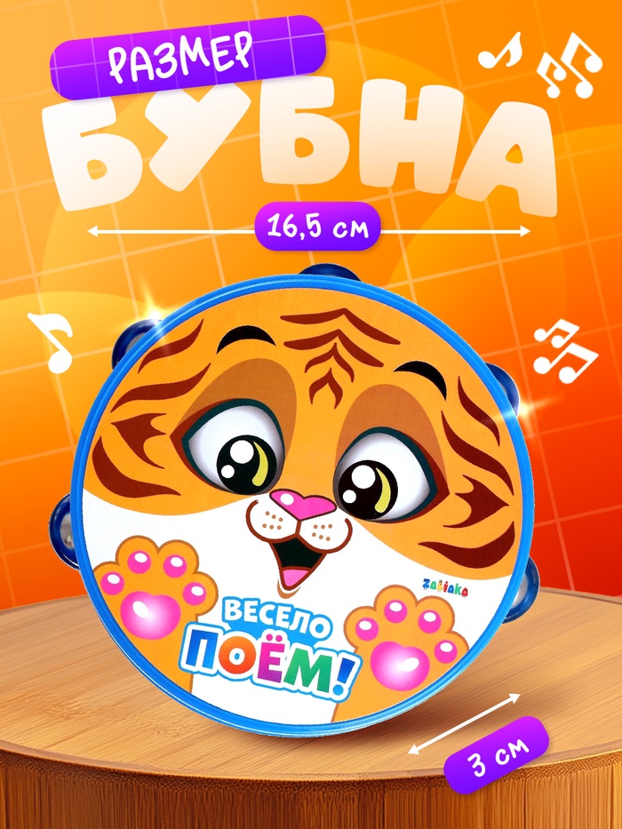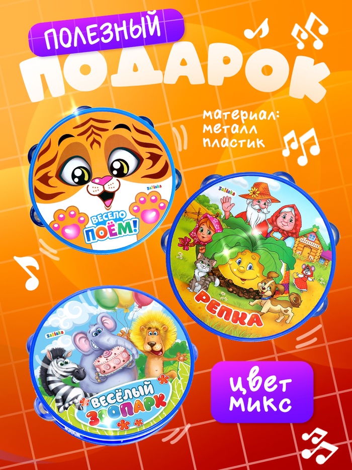 Музыкальная игрушка бубен большой «Весело поём», 16.5 см, МИКС