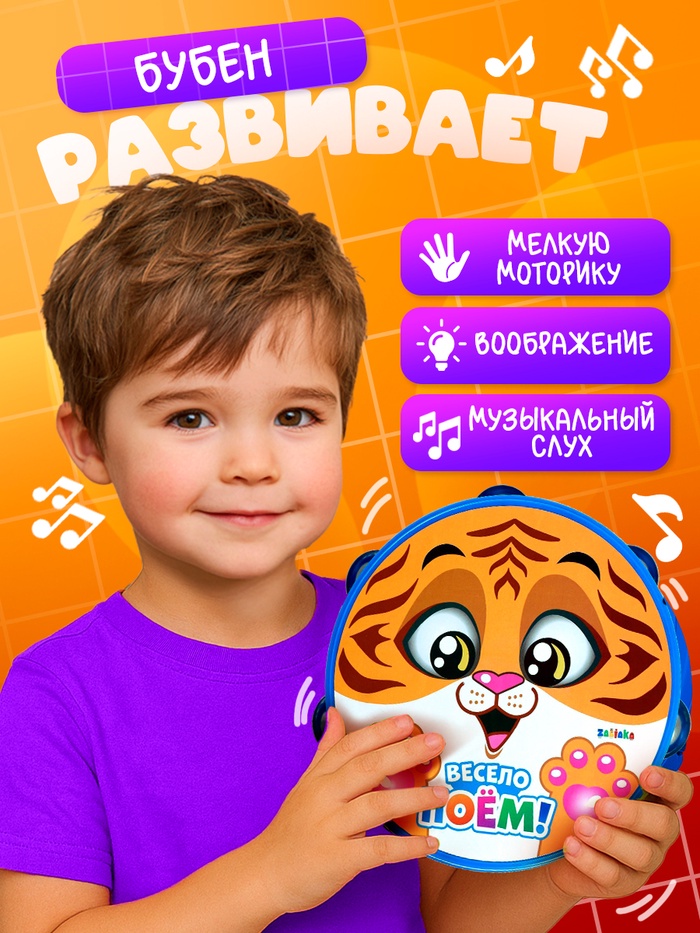 Музыкальная игрушка-бубен «Весело поём» поможет весело провести время и потренировать полезные навыки.