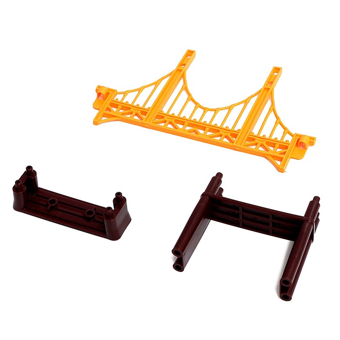 - Трасса собирается из обычных и гибких элементов, одного моста и опор для второго уровня.