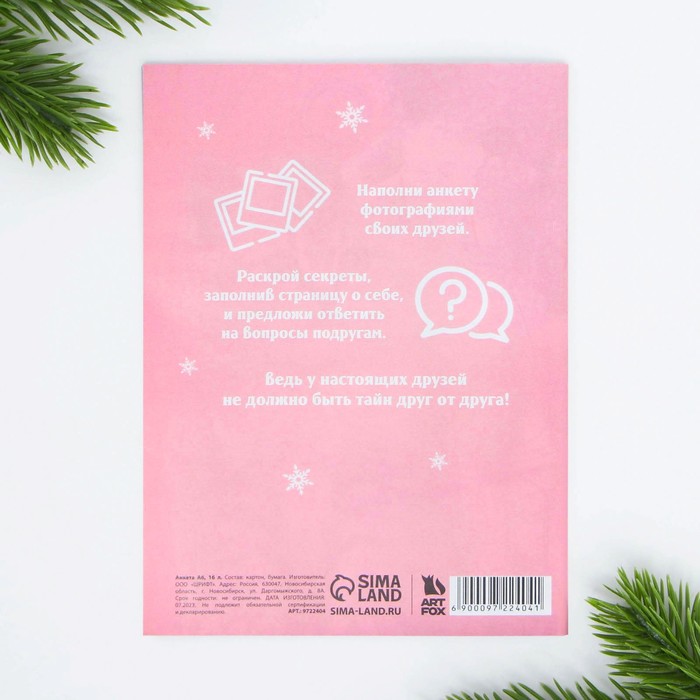 Эта анкета станет для тебя маленькой книгой больших тайн... Храни все свои секреты и интересную информацию. Поделись анкетой с друзьями, дав заполнить странички этой книжки!