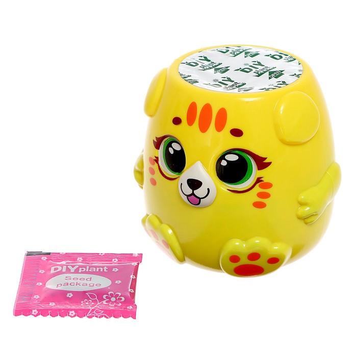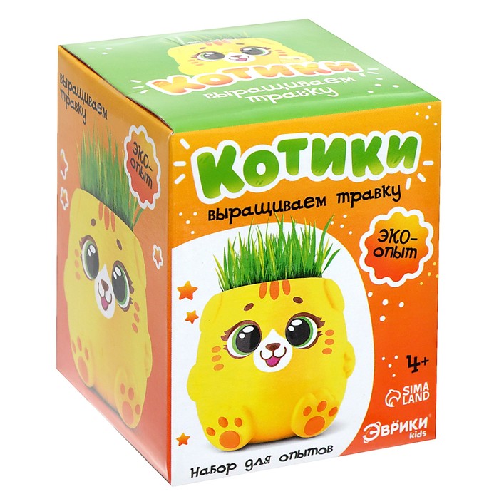 Набор для опытов, для детей «Котики. Выращиваем травку», растение в жёлтом горшочке