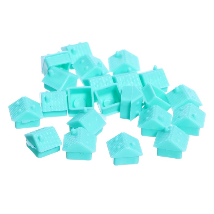 - В коробке — игровое поле, 4 фишки игроков, 22 дома, банковские карты и терминал.