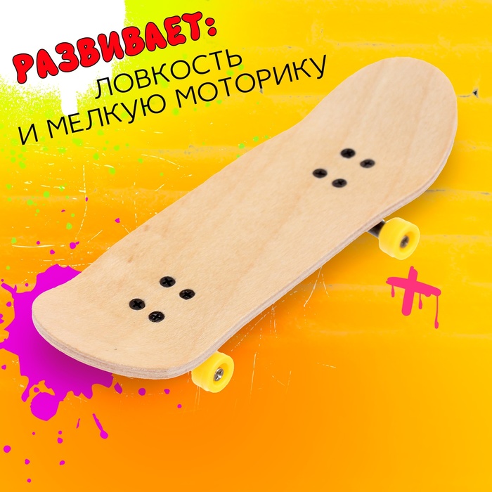 Деревянный скейт для пальцев «Профессионал» создан для настоящих любителей экстрима. Компактная модель отлично подойдёт для мальчиков, которые увлекаются фингер-спортом или только начинают осваивать азы скейтбординга.