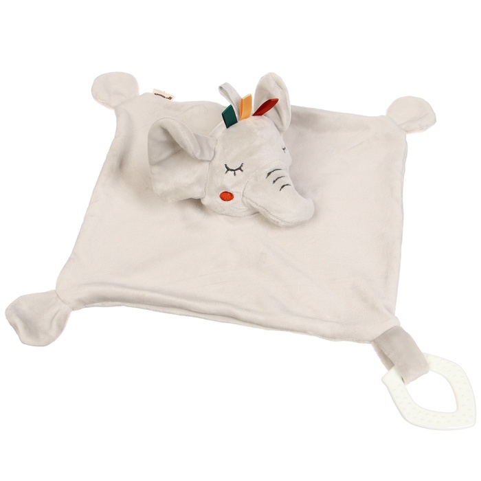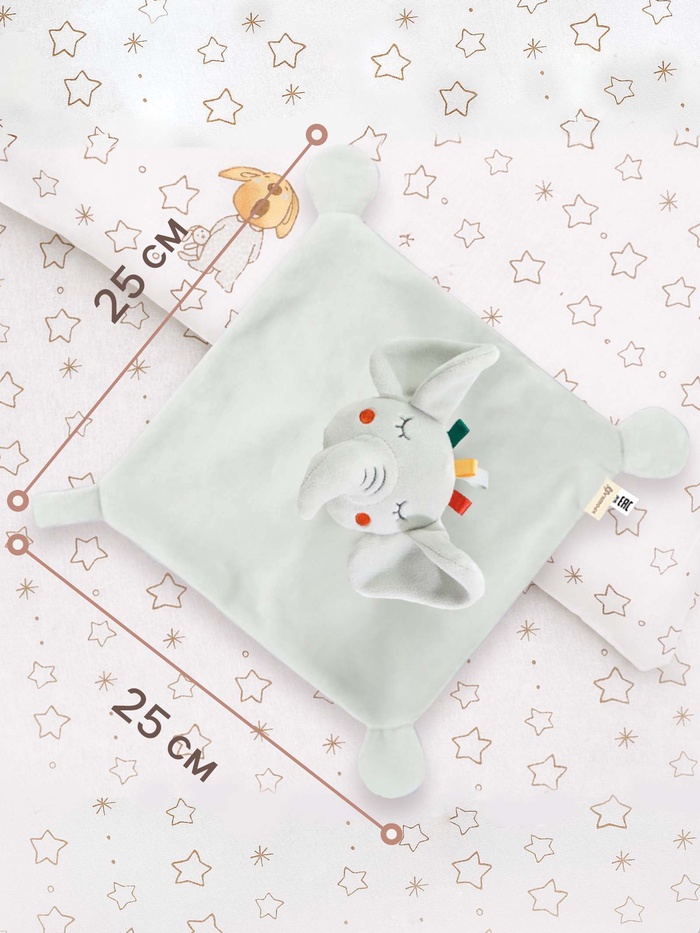 Комфортер удобно держать в маленьких ручках, прижимать к себе во время сна или брать с собой в коляску и кроватку. Мягкое полотно с уголками подходит для захвата, помогает малышу развивать тактильные ощущения без лишней стимуляции.