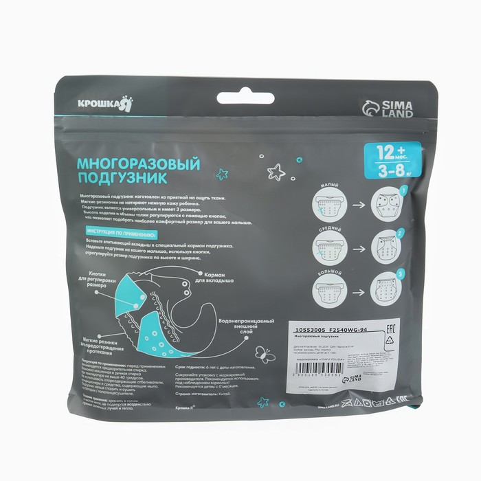 Многоразовый подгузник Крошка Я «Зигзаги», 3-15 кг, зеленый