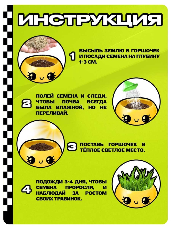 Подходит для детей от 3 лет, для занятий дома или в детских образовательных учреждениях. Горшочек с забавным дизайном станет украшением детской комнаты и добавит радости в процесс выращивания.