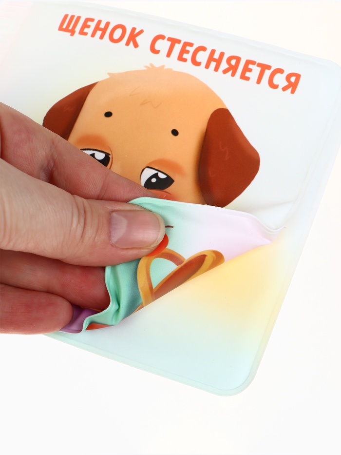 - Каждый лист можно трогать, переворачивать, сминать — не порвутся и не намокнут. Материал легко моется и быстро сохнет после игры.