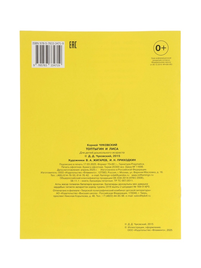 Книга «Топтыгин и лиса» — это увлекательная сказка в стихах от Корнея Чуковского, которая подарит радость детям от 3 лет. Красочные страницы с яркими иллюстрациями Жигарева В. и Приходкина И. превращают чтение в настоящую игру.