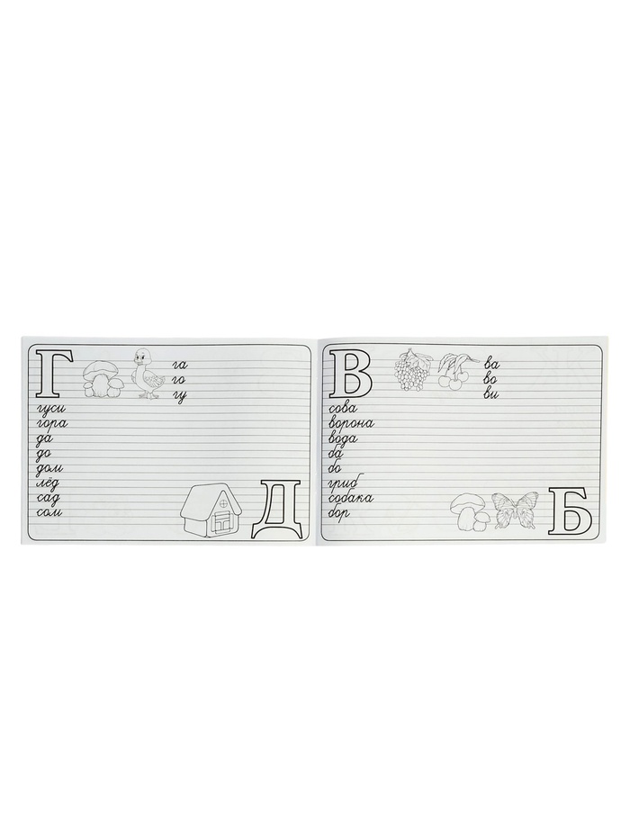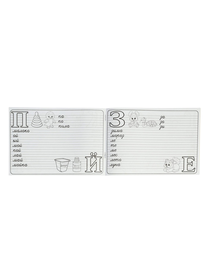 - Делает первые шаги в грамоте осознанными. Слоги, слова и простые фразы помогают видеть смысл даже в самых первых записях.