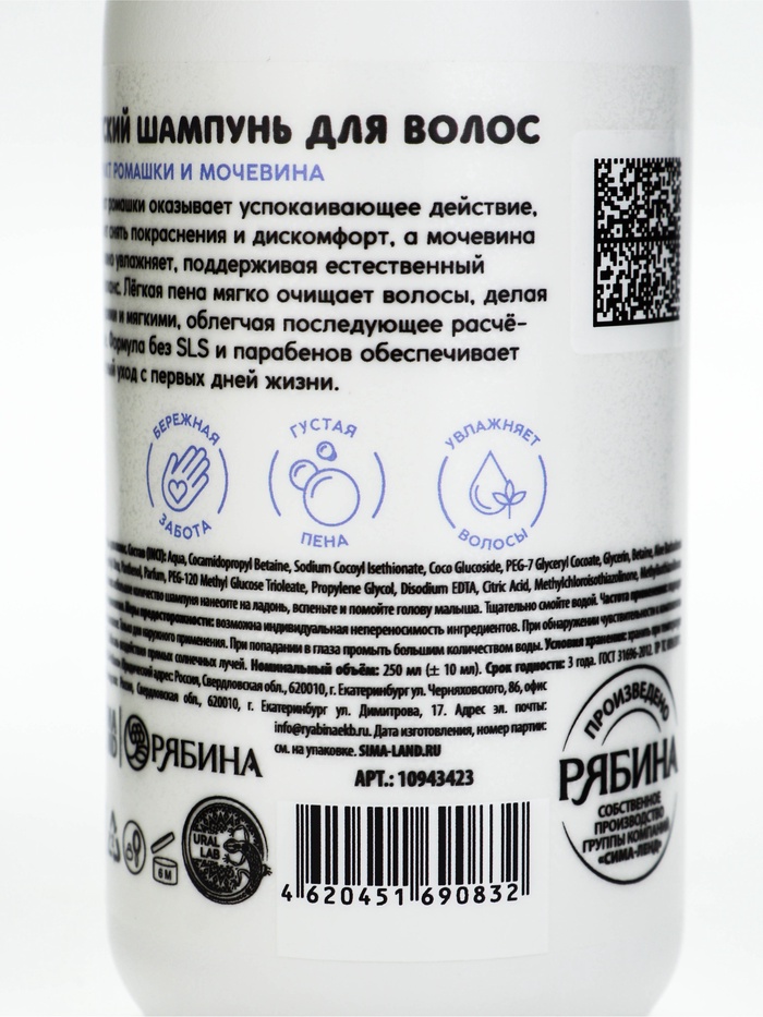 Детский шампунь для волос «Зверята», с экстрактом ромашки и мочевины, 250 мл, ULAB