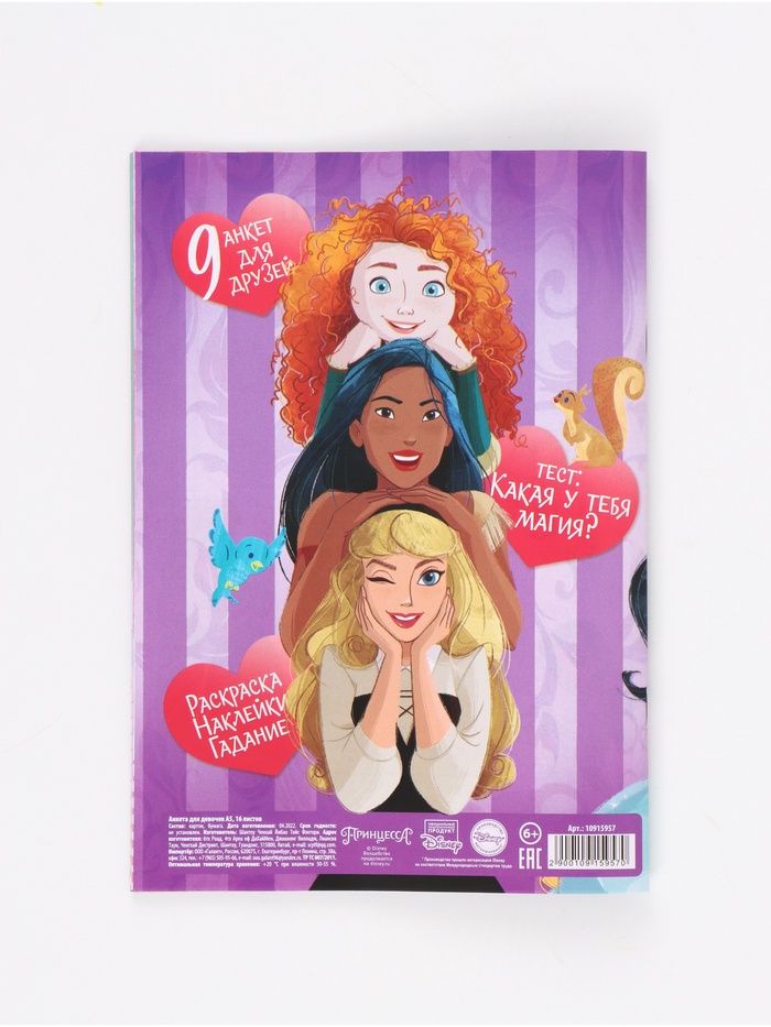 Анкета для девочек А5, 16 л + наклейки "Принцессы"